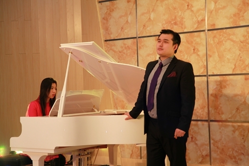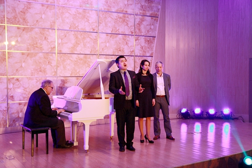 著名德国抒情花腔女高音歌唱家莎拉·莱恩格勒女士,毕业于著名的奥地利维也纳音乐学院。她在晚会上独唱了一首《你是我挚爱的人》的歌曲,由哈根音乐学校的校长施罗德为其钢琴伴奏。著名男中音歌唱家乌尔夫·梅德勒先生,毕业于奥地利萨尔茨堡音乐学院,是一位活跃在欧洲各大小歌剧院的舞台上的著名歌者。他则演唱了选自瓦格纳歌剧《唐豪瑟尔》咏叹调“晚星颂”,由德国著名的钢琴家和钢琴教育家罗兰·普洛尔为其钢琴伴奏。罗兰·普洛尔还随后为莎拉·莱恩格勒女士和乌尔夫·梅德勒先生重唱——选自莫扎特歌剧《唐璜》的《让我们携手同行》伴奏,包括晚会最后的三重唱《今夜无人入睡》的钢琴伴奏。熊柯嘉先生、莎拉·莱恩格勒女士和乌尔夫·梅德勒先生共同演唱了《图兰朵》中的选段《今夜无人入睡》。对于观众来说,这首曲子算是耳熟能详了,闻听过很多歌唱家演唱,似乎多了一份共鸣。其中,体育学院的同学还表演了健美操《青春活力》,正如同他们的青春激情澎湃,充满活力。