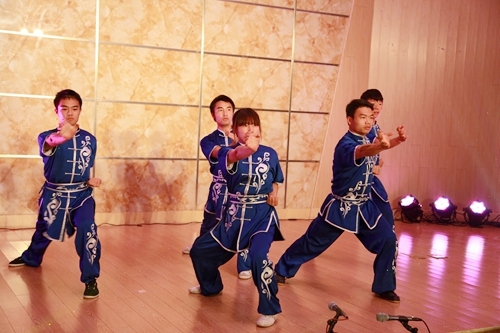 晚会由体育学院学生表演的中华传统武术拉开序幕。狮舞、旗舞,以及拳术、刀术的表演,令人目不暇接,让人感受到中国功夫的韵味。随后是九江京剧票友、我校艺术学院民乐队表演的京胡协奏曲《夜深沉》,是从昆曲《孽海记·思凡》中的《风吹荷叶煞》的四句唱腔发展而来的一首脍炙人口的京剧曲牌。其由京胡独奏,击鼓相伴。这种独特的表演形式,富有中国民族气派,使乐曲更添光彩。而德籍华裔青年钢琴演奏家、钢琴教育家、德国柏林汉斯·埃斯勒音乐学院的钢琴老师韩卉菁女士独奏了中国钢琴作品《浏阳河》。此钢琴曲是上个世纪七十年代由民歌改编而来,其旋律十分优美,使听众不自觉地有一种怀旧的情绪。青年歌剧演唱家、博士、九江学院柔性引进的德国音乐家团队的负责人熊柯嘉先生演唱了意大利民歌《请别忘记我》,深情、悠扬,完成一个漂亮的开场时,他牵着为其伴奏的韩卉菁女士的手,优雅地迎着观众的掌声致谢,韩卉菁女士还为熊柯嘉先生伴奏了他演唱的《红楼梦》插曲《红豆词》。
