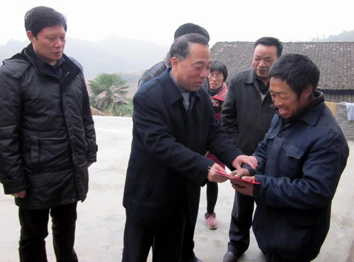 元月13日,校长甘筱青在离退休职工管理处处长周茂生、工会主席金葆金、扶贫工作队员杨泽明的陪同下,到我校定点包扶贫困村---武宁县上汤乡九宫村走访慰问。