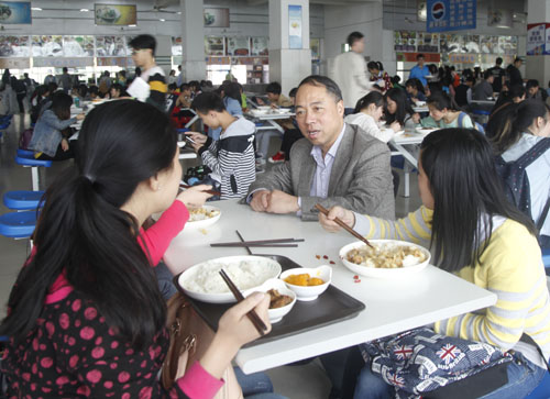 甘筱青校长到学生食堂查看烹饪机器人运行情况
