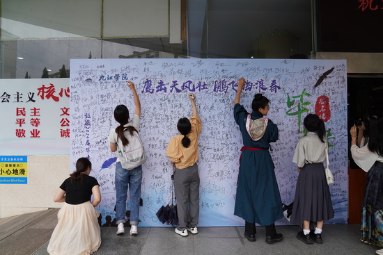 本次活动在学生间引起了热烈反响,获得了一致好评。文学院张同学动情地说:“母校为我们精心准备的一切,让我感受到无比的温暖和感动。在签名墙上,我和舍友写下了对未来的期望,也为彼此送上真诚的祝福。九江学院,永远是我们心中的家,我也永远不会忘记食堂这份特有的家的味道。”