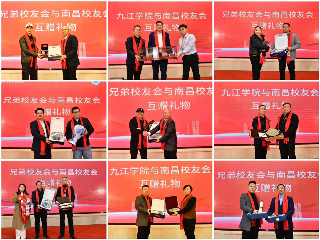 学校和各兄弟校友会分别为南昌校友会赠送了礼物。南昌校友会也分别向母校及各兄弟校友会回赠礼物,感谢母校培养及兄弟校友会的大力支持,祝愿母校及兄弟校友会越办越好。